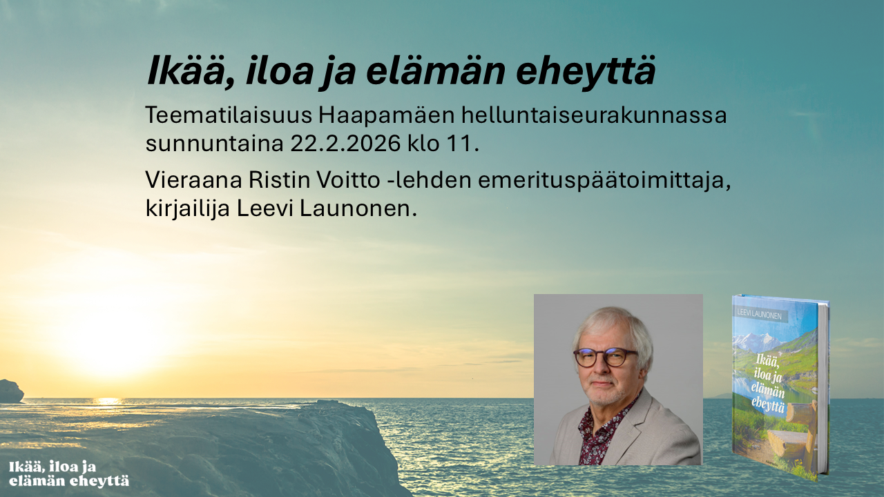 Teematilaisuus, vieraana Ristin Voitto -lehden emerituspäätoimittaja, kirjailija Leevi Launonen